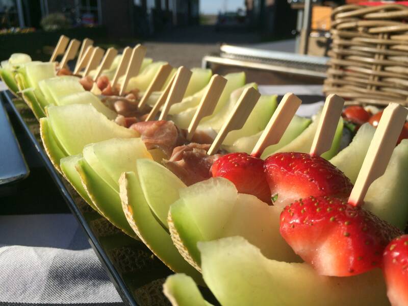 We bieden een selectie van verschillende smaken pizza’s, die we in 8 punten snijden, zodat iedereen vrij kan kiezen en zichzelf kan bedienen tot ze genoeg hebben. Wij zorgen voor servetjes, bordjes, verlichting, parasol en een mooi buffettafel.
